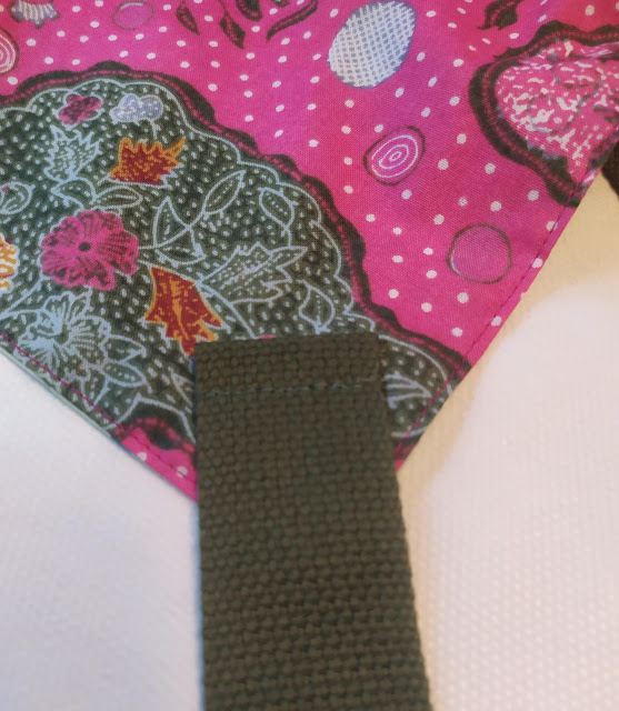 Metemos para adentro la tela del lado no cosido. Planchamos los cuatro triángulos. Y ahora cosemos un pespunte muy al borde por las zonas marcadas en verde.